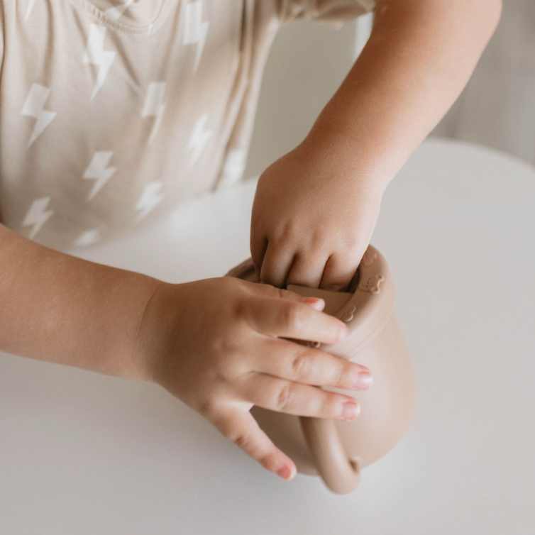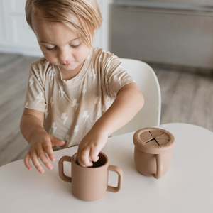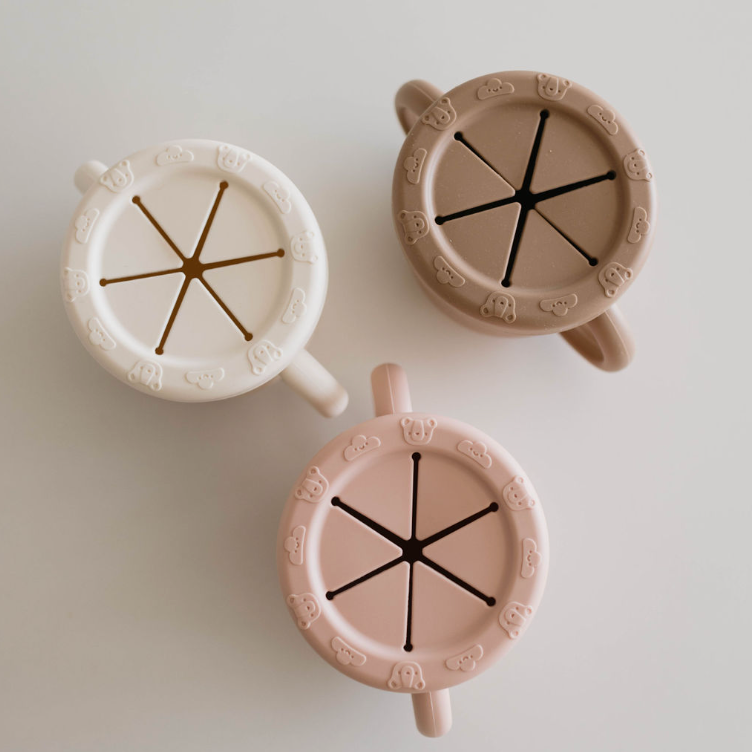 Our Snack Cup is the perfect snack container for your little one. With BPA-free, food safe silicone and two easy-to-grasp handles, your child can enjoy their favorite snacks on the go. Say goodbye to messy spills and hello to easy snacking! Care: Hand wash warm soapy water.