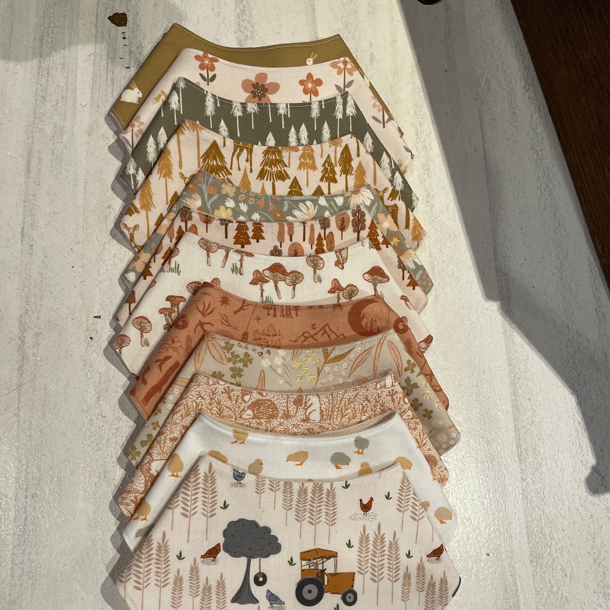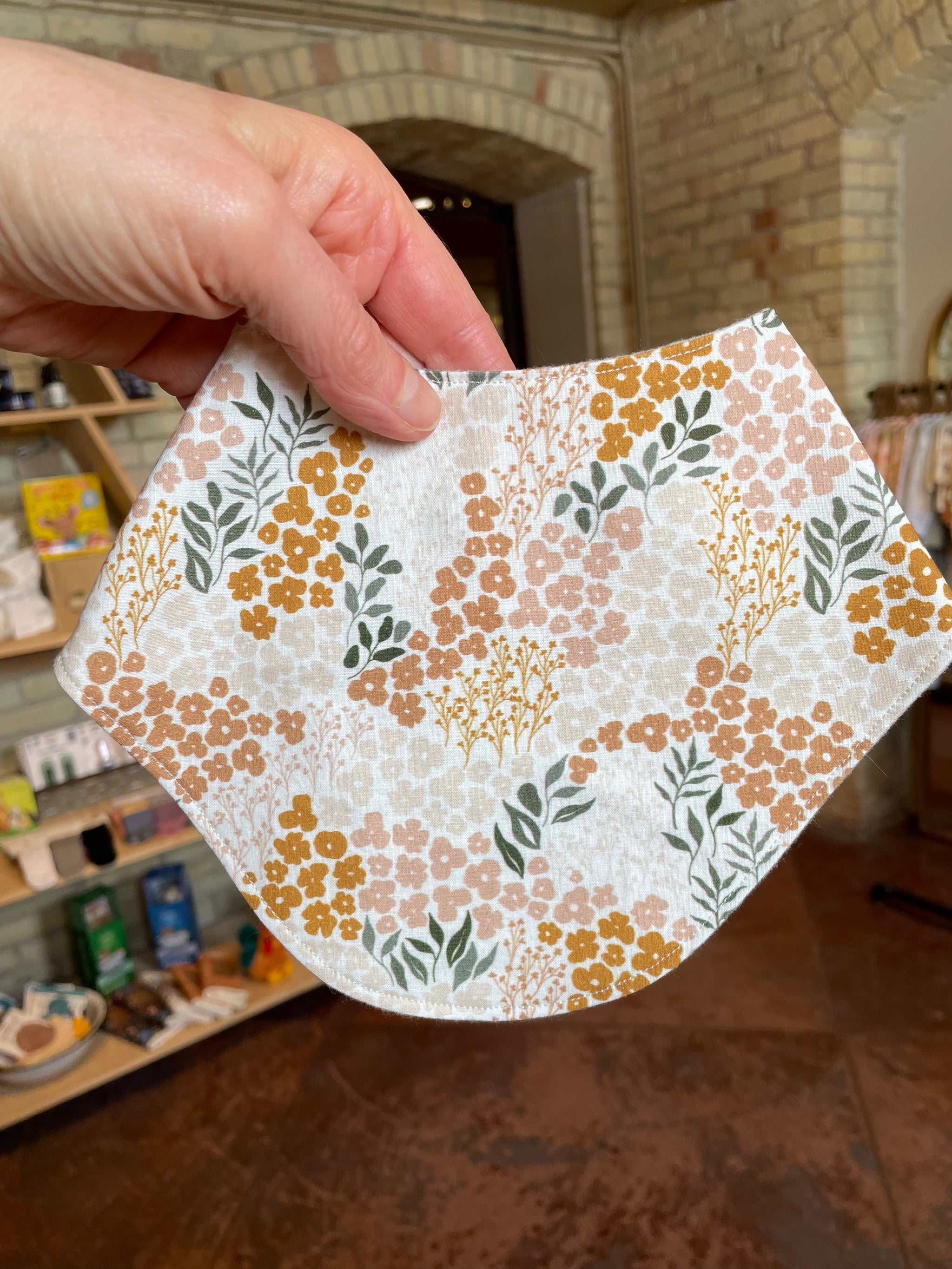 Made local! Beautiful neutral prints & double snap closure on the back. Made with 100% organic cotton & lined in 100% organic unbleached cotton flannel. These are very lightweight.