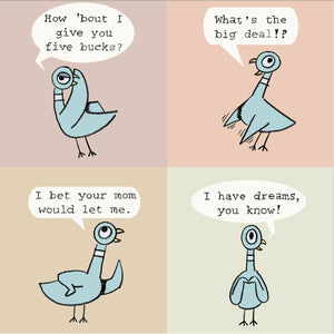 Finally, a board book you can say “no” to! When the Bus Driver takes a break from his route, a very unlikely volunteer springs up to take his place: a pigeon! But you’ve never met a pigeon like this one before. As the Pigeon pleads, wheedles, and begs his way through the book, readers answer back and decide his fate.