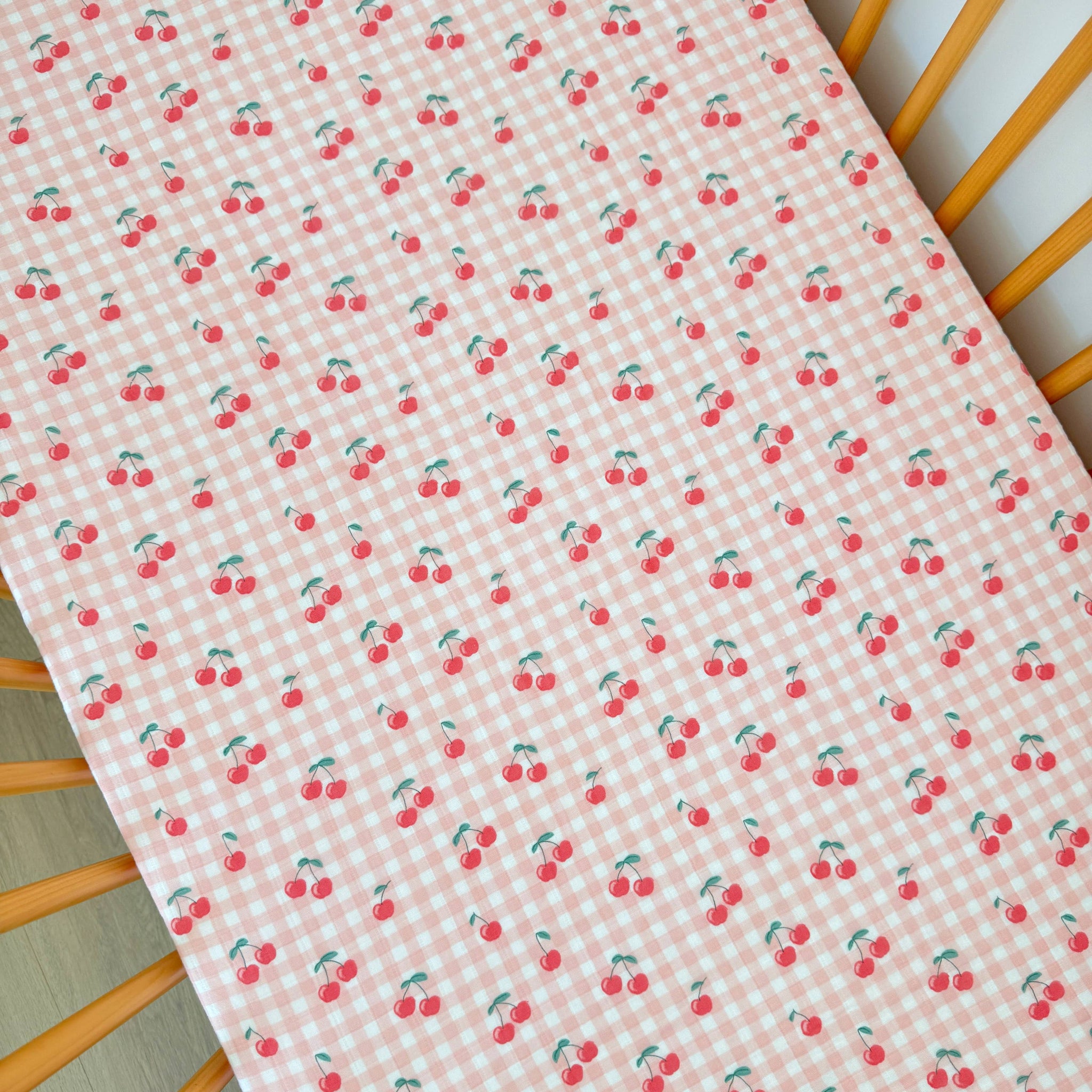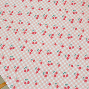 Organic Cotton Muslin Crib Sheet - Gingham Cherries